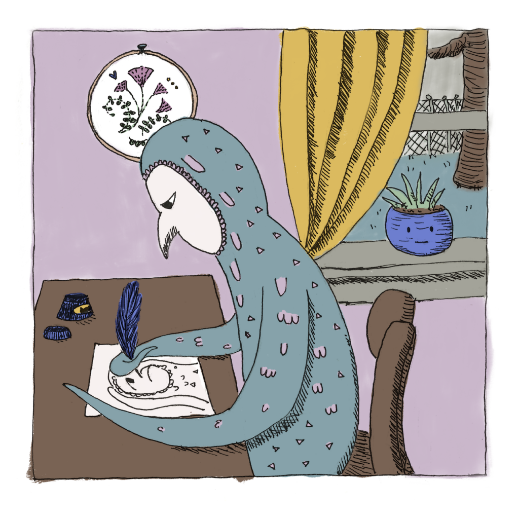 The one that started it all. Drawn traditionally with ink and marker in a sketchbook.
